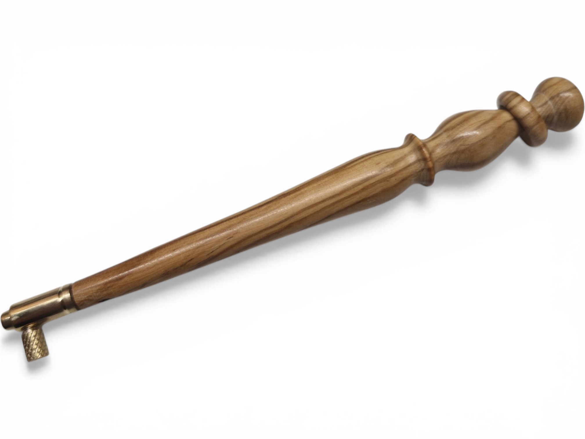 Crochet de Lunéville artisanal tourné à la main en olivier, essence noble aux reflets dorés et au veinage vivant. Chaque manche est une pièce unique, sculptée par la nature et révélée par le geste, offrant des nuances chaleureuses et un caractère singulier.