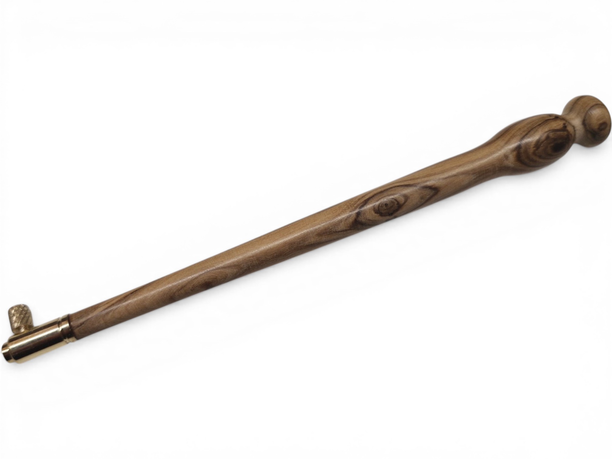 Crochet de Lunéville tourné à la main en olivier, bois aux reflets chauds et au veinage expressif. Chaque pièce révèle un motif unique, façonné par la nature.